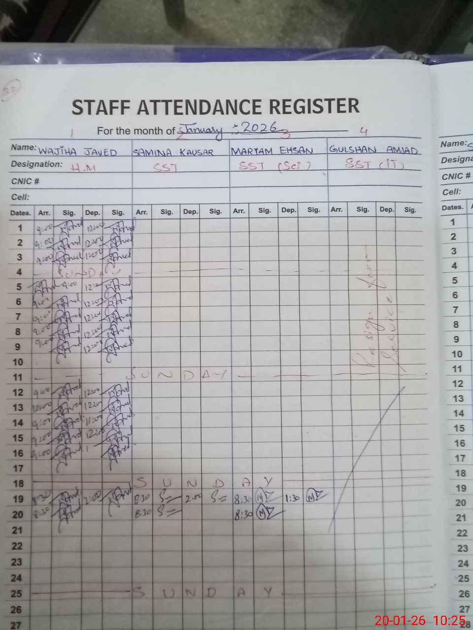 | CNIC | Full Name | Designation | R/C | Absence during last cal. month |