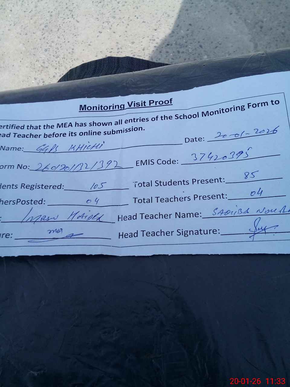 | EMIS Code: 37420395 | Name of School: GGPS KHICHI P/O JHATTLA | |||