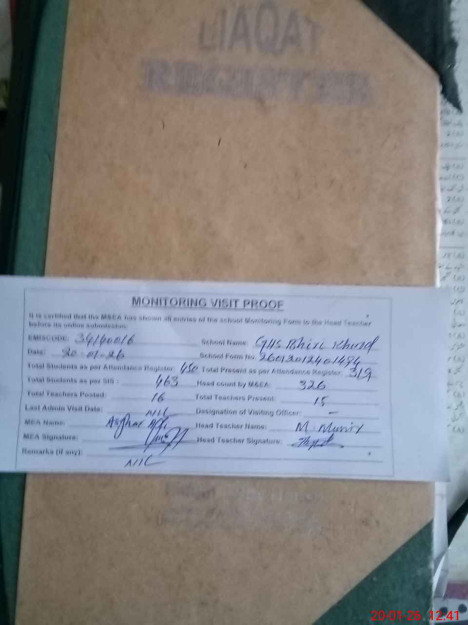 | EMIS Code: 34140016 | Name of School: GHS BHIRI KHURD | |||