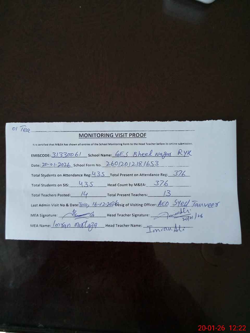 | EMIS Code: 31330061 | Name of School: GES BHEEL NAGAR RAHIM YAR KHAN | |||