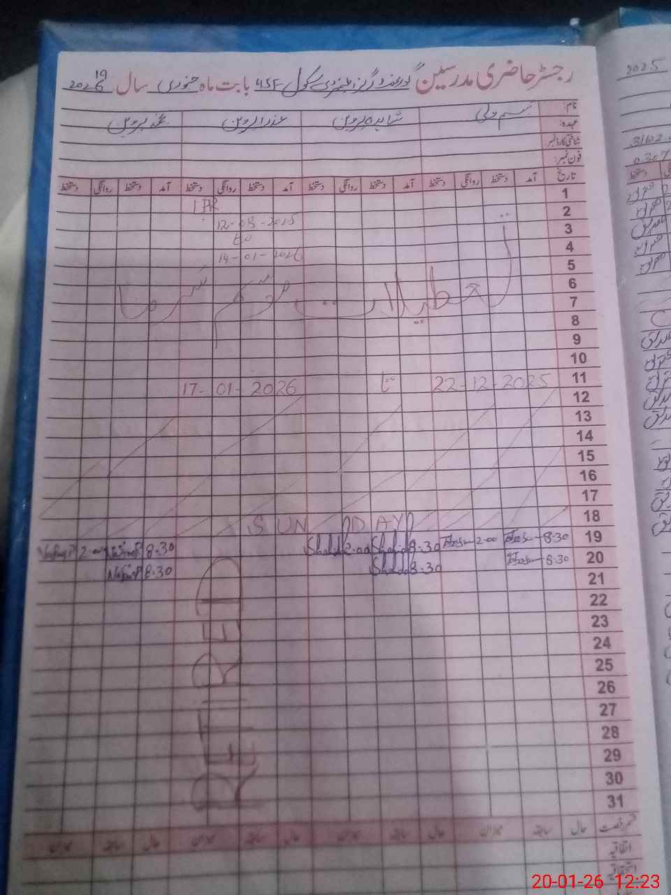 | CNIC | Full Name | Designation | R/C | Absence During Last Calender Month |