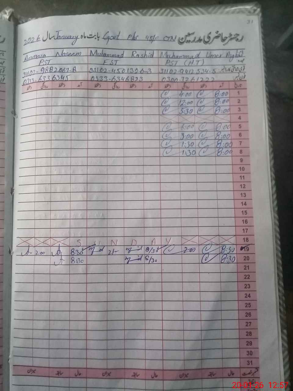 | CNIC | Full Name | Designation | R/C | Absence During Last Calender Month |