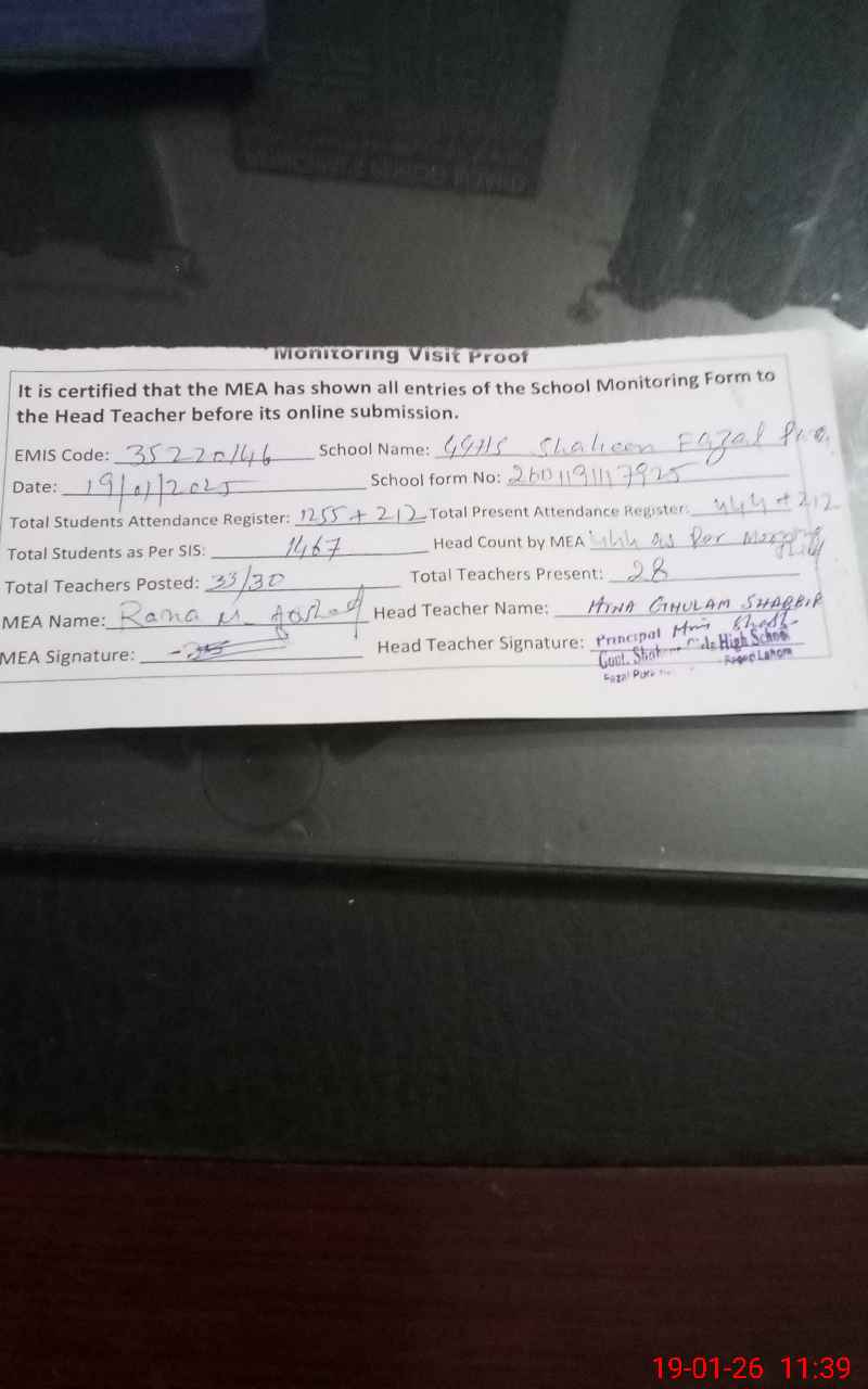 | EMIS Code: 35220146 | Name of School: GGHS SHAHEEN FAZAL PURA KOT KHAWAJA SAEED | |||