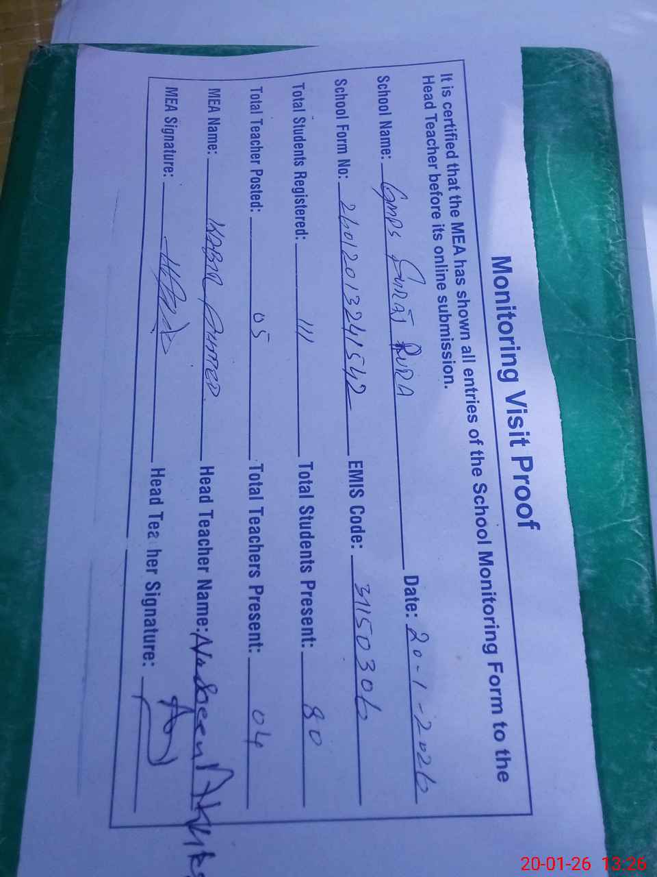 | EMIS Code: 31150306 | Name of School: GMPS SURAJ PURA | |||