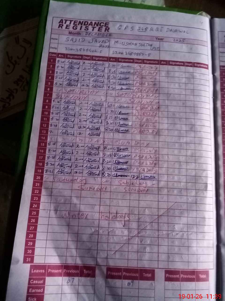 | Leave | Duty | Absent | Maternity | Medical | Ex- Pak |