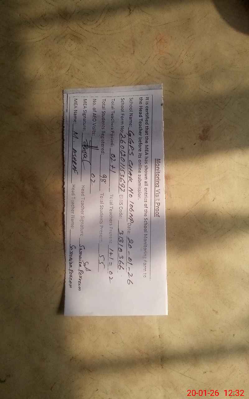| EMIS Code: 31310366 | Name of School: GGPS CHAK NO. 106 NP | |||