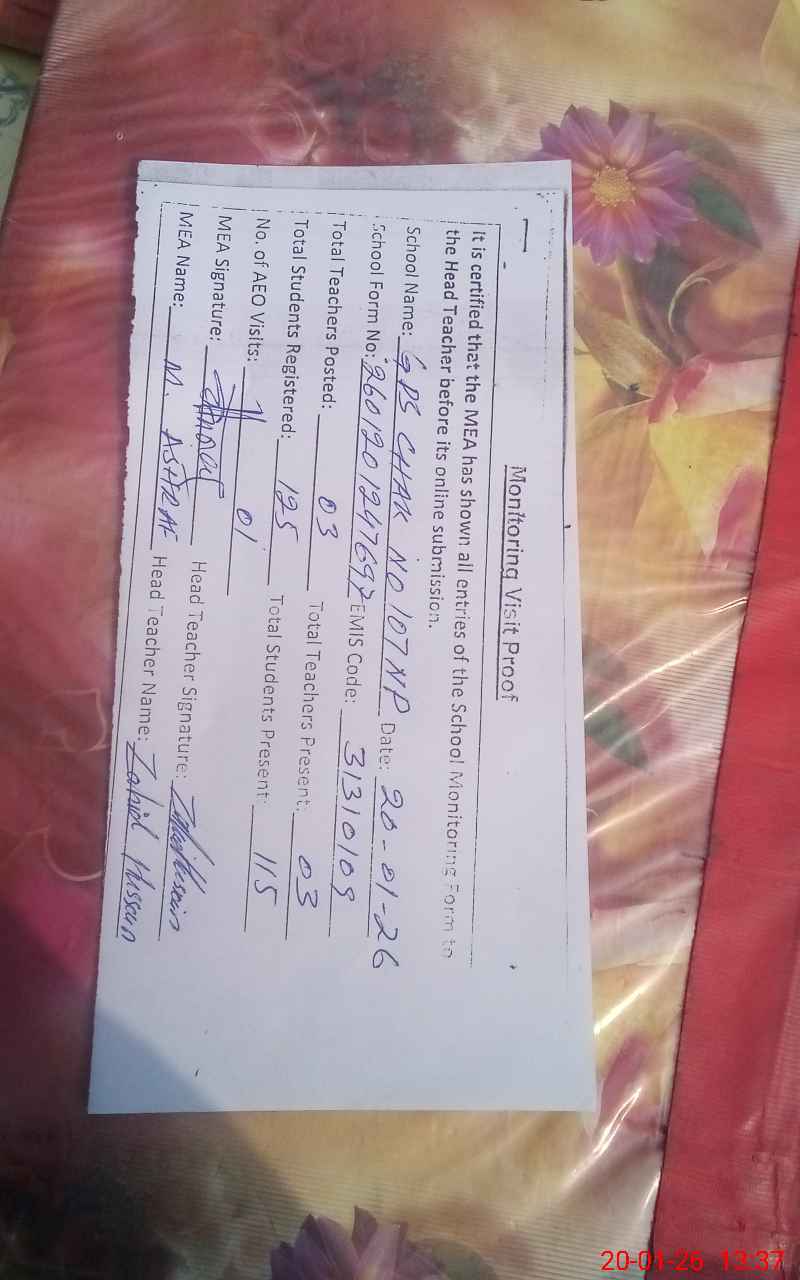 | EMIS Code: 31310109 | Name of School: GPS CHAK NO 107 NP (After Noon) | |||