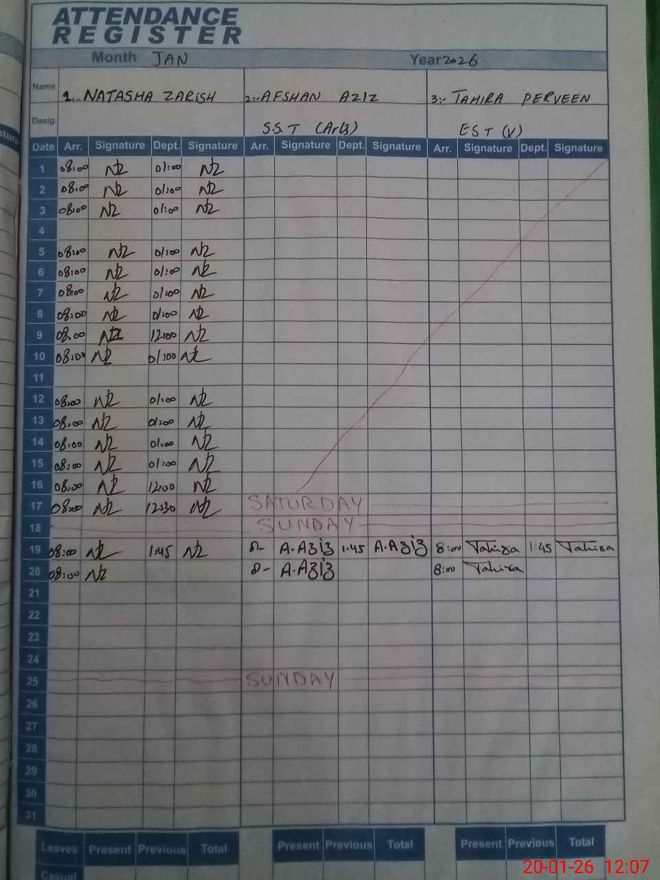 | CNIC | Full Name | Designation | R/C | Absence During Last Calender Month |