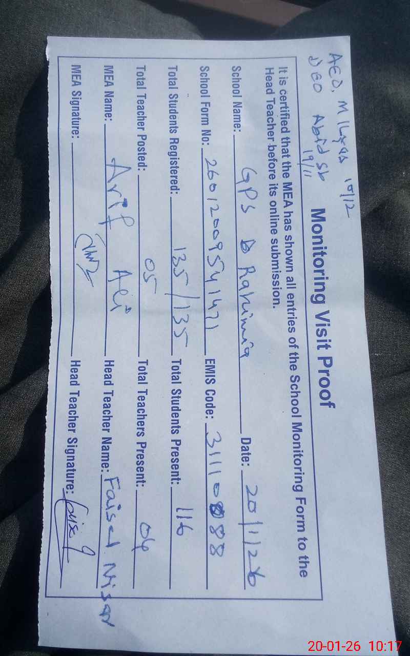 | EMIS Code: 31110088 | Name of School: GPS RAHIMIA DUNGA BUNGA | |||