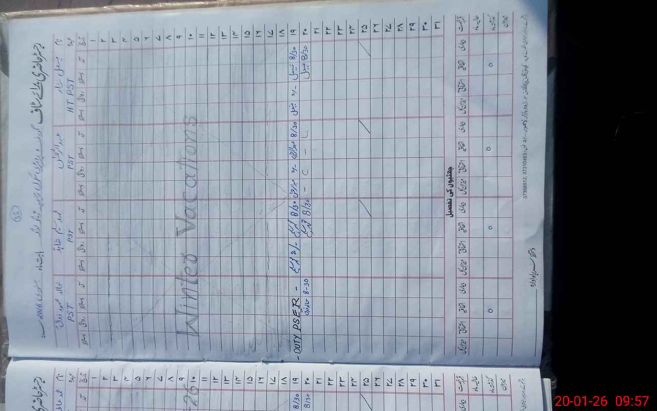 | CNIC | Full Name | Designation | R/C | Absence During Last Calender Month |