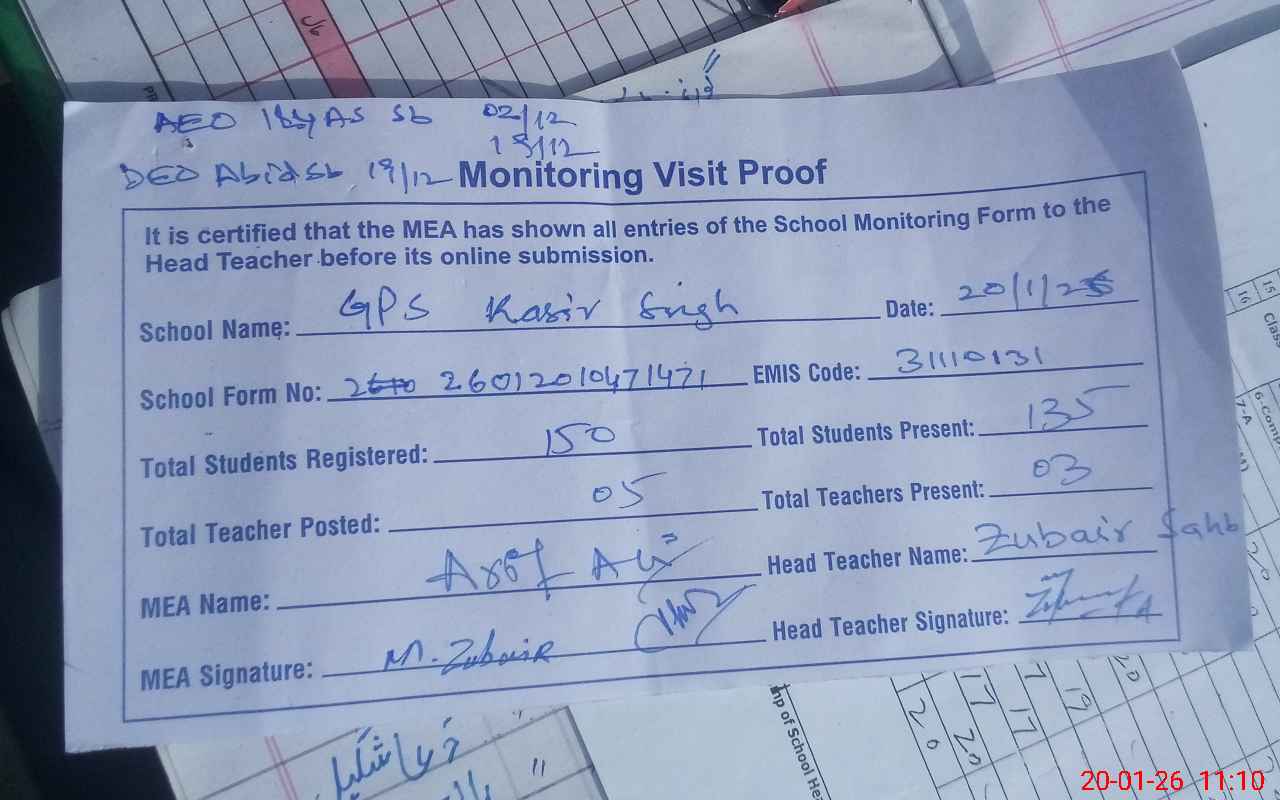 | EMIS Code: 31110131 | Name of School: GPS KASIR SINGH | |||