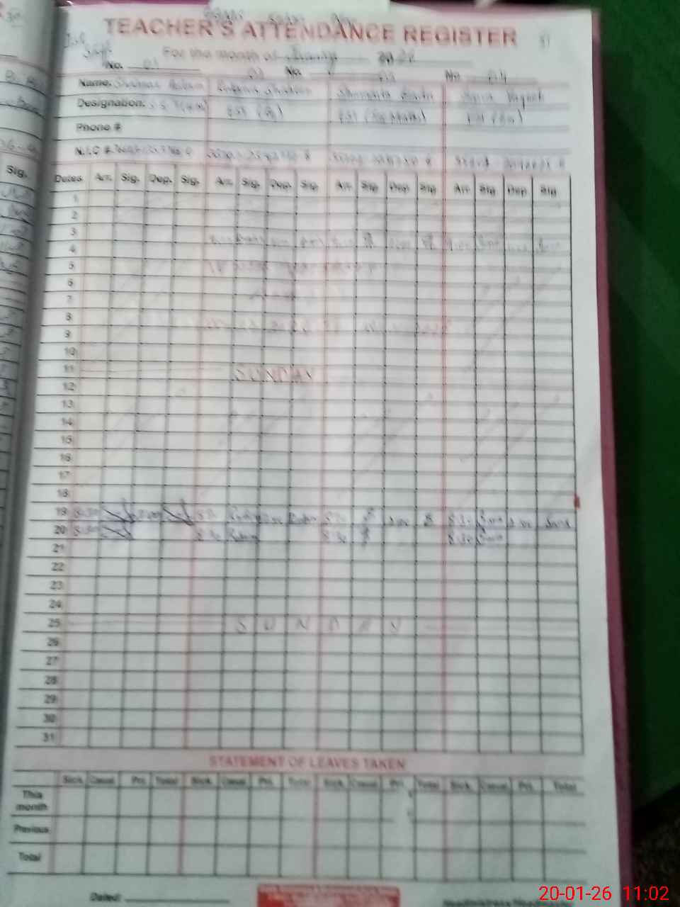 | 31**** | Ak**** Hu**** | SG | 0 | 0 | 31 | 0 | 0 | 0 | 0 | 0 | 0 | Absent (Un-Authorized) | |