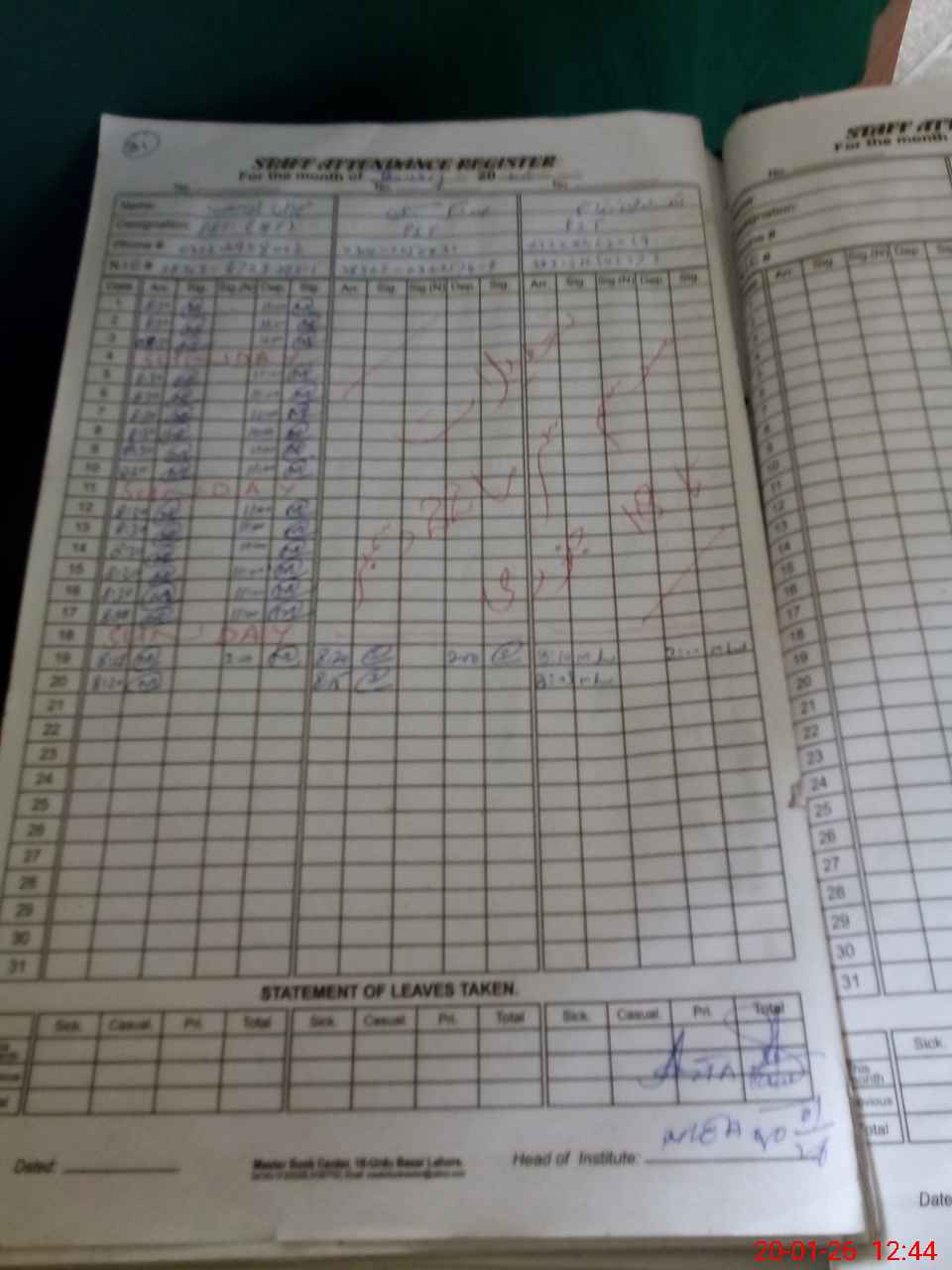 | Leave | Duty | Absent | Maternity | Medical | Ex- Pak |