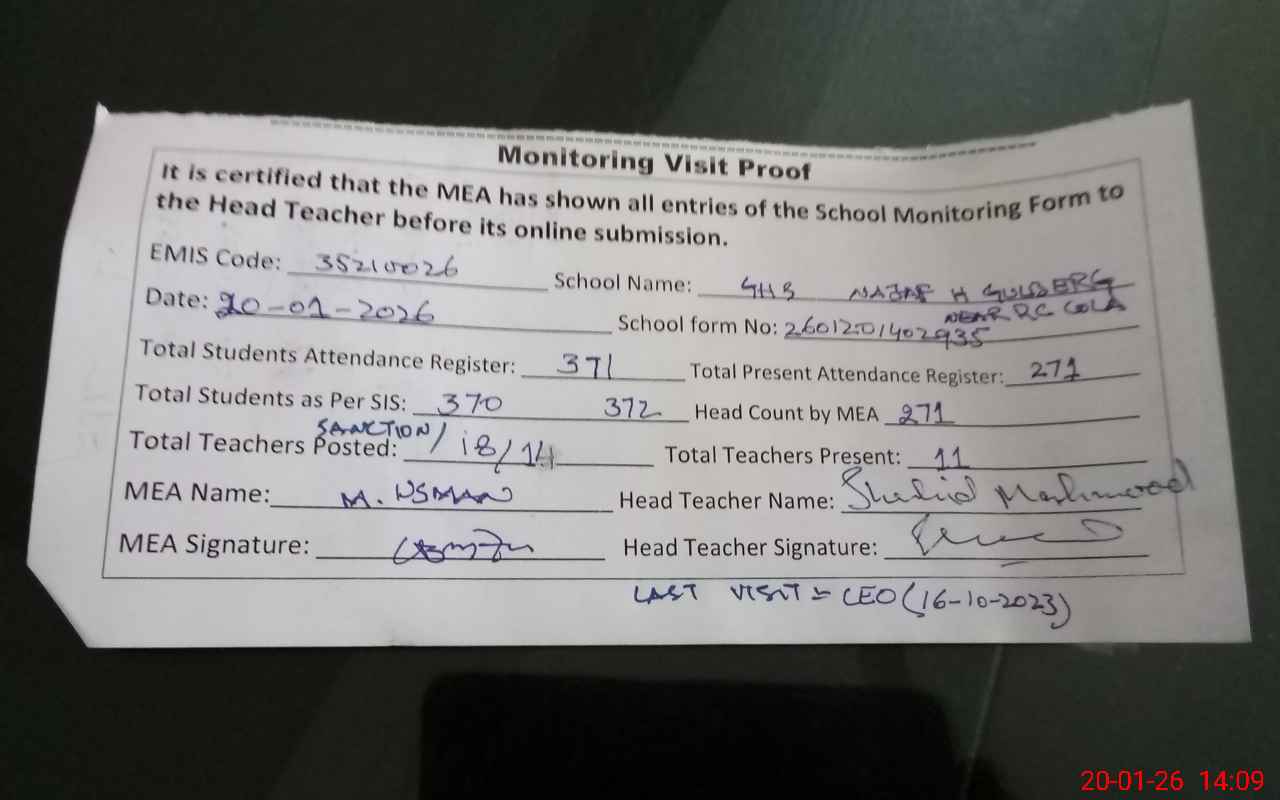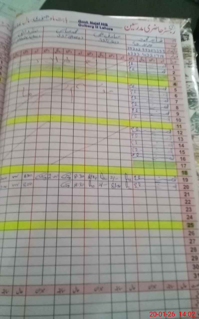 | EMIS Code: 35210026 | Name of School: GHS NAJAF H GULBERG NEAR RC COLA N-BLOCK | |||