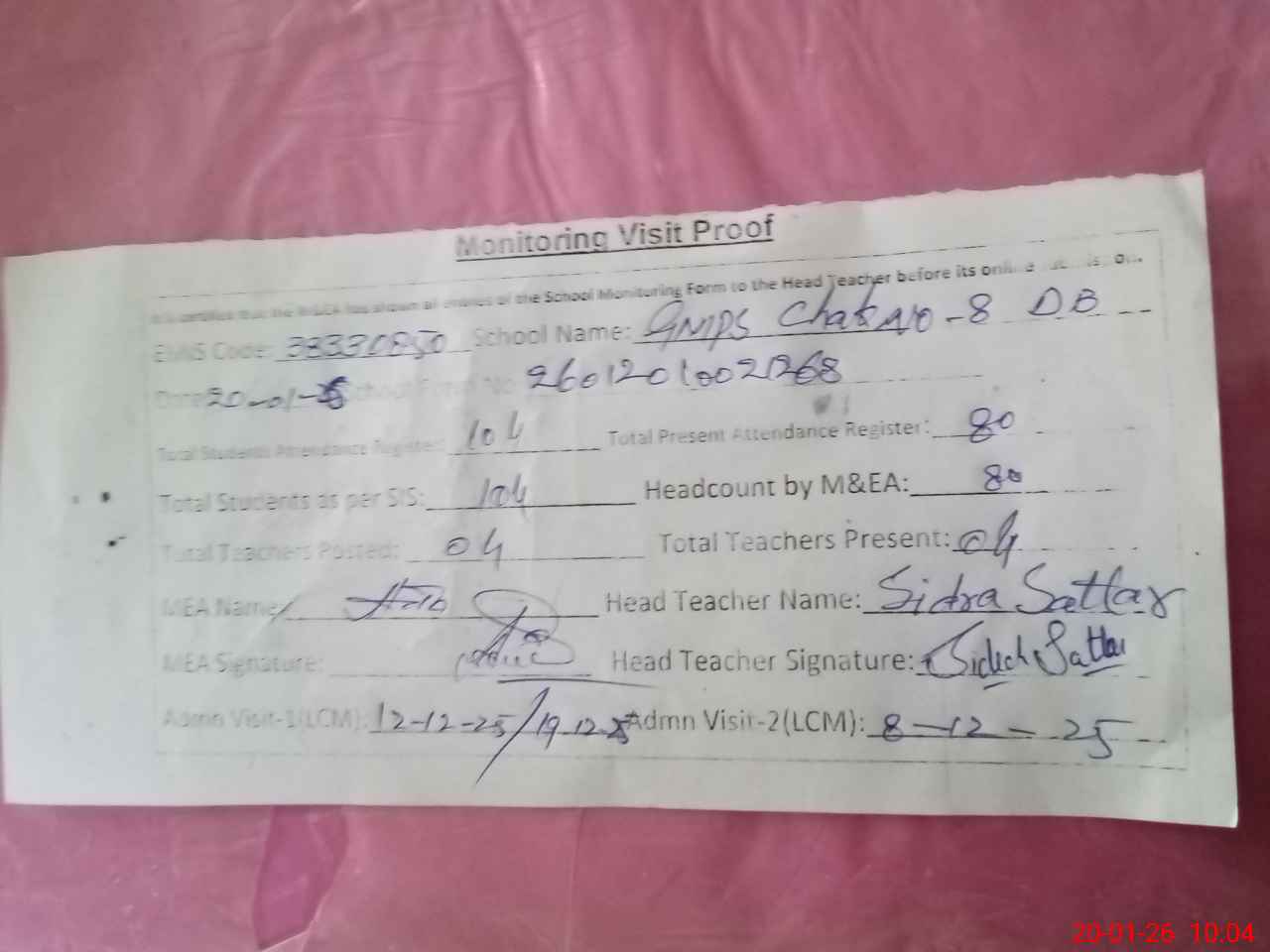 | EMIS Code: 38330850 | Name of School: GMPS CHAK NO 8 DB | |||