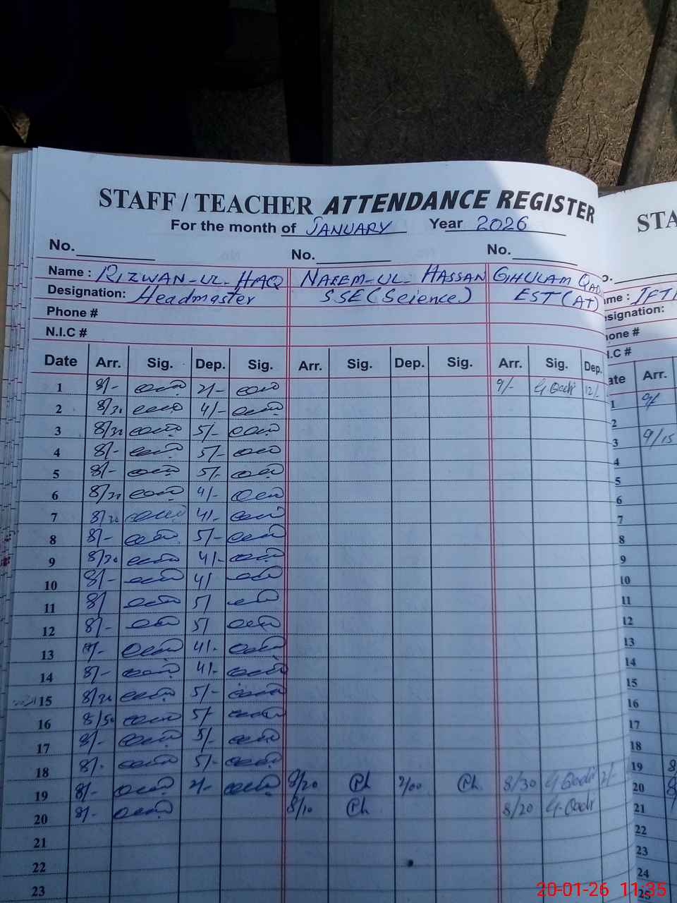 | Name: Ri**** Designation: (School Headmaster's/Headmistress's) S.S.T.(GENERAL) Phone/Cell Number: 03**** |