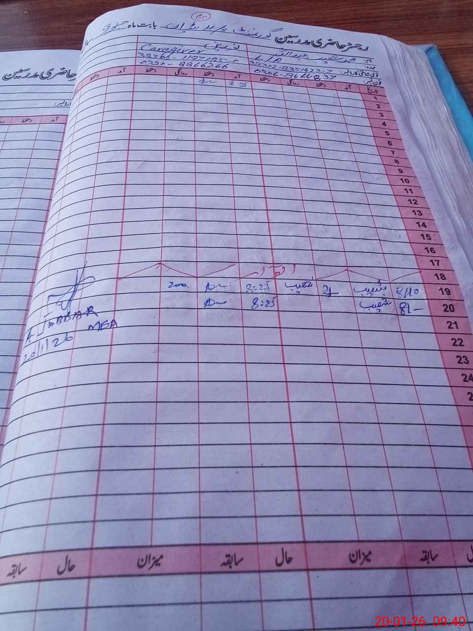 | CNIC | Full Name | Designation | R/C | Absence During Last Calender Month |
