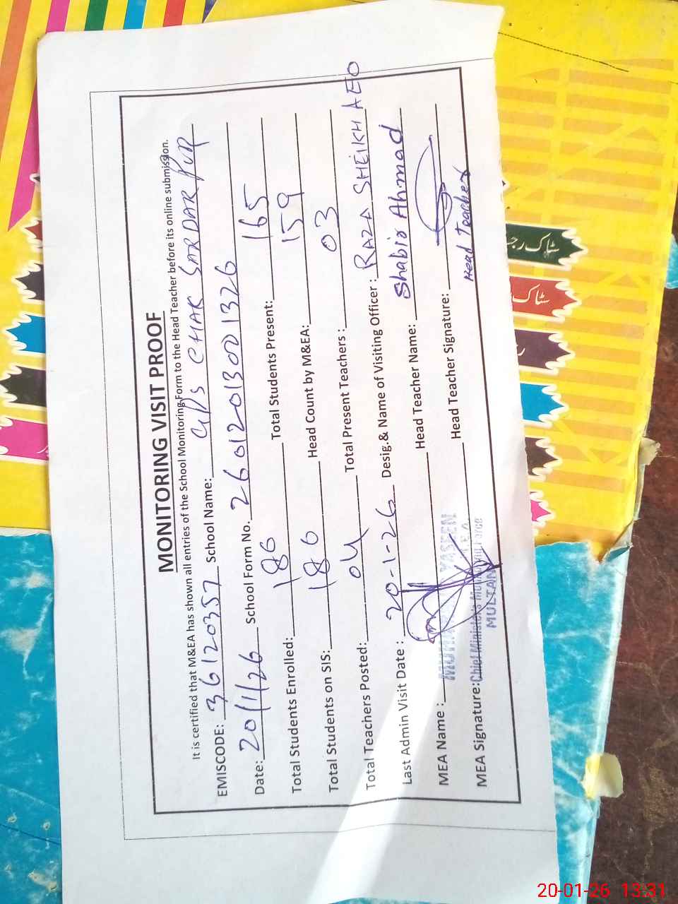 | EMIS Code: 36120357 | Name of School: GPS CHAK SARDAR PUR MOZA SHAH PUR UBHA | |||