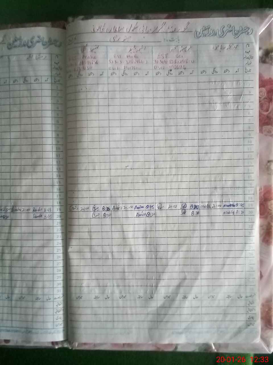 | CNIC | Full Name | Designation | R/C | Absence During Last Calender Month |
