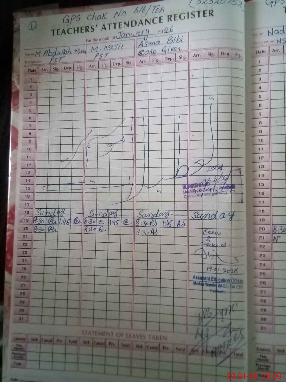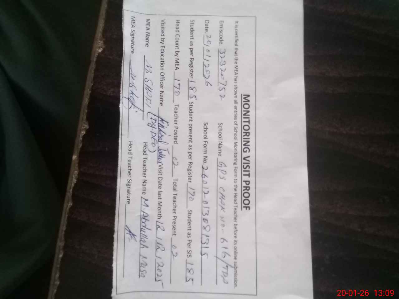| Attendance Register | Head Teacher | MEA with School | Visit Proof |