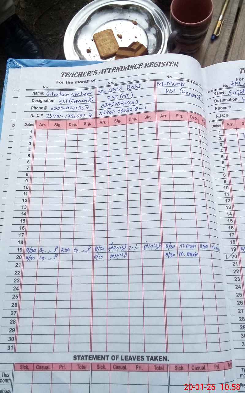 | Name: KH**** HA**** Designation: (School Headmaster's/Headmistress's) S.S.T.(Arts) Phone/Cell Number: 03**** |