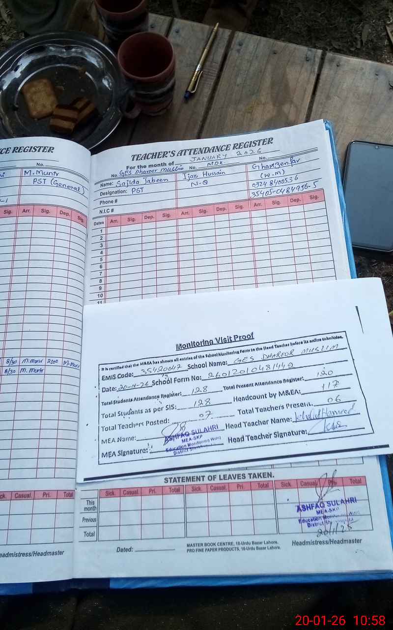 | Attendance Register | Head Teacher | MEA with School | Visit Proof |