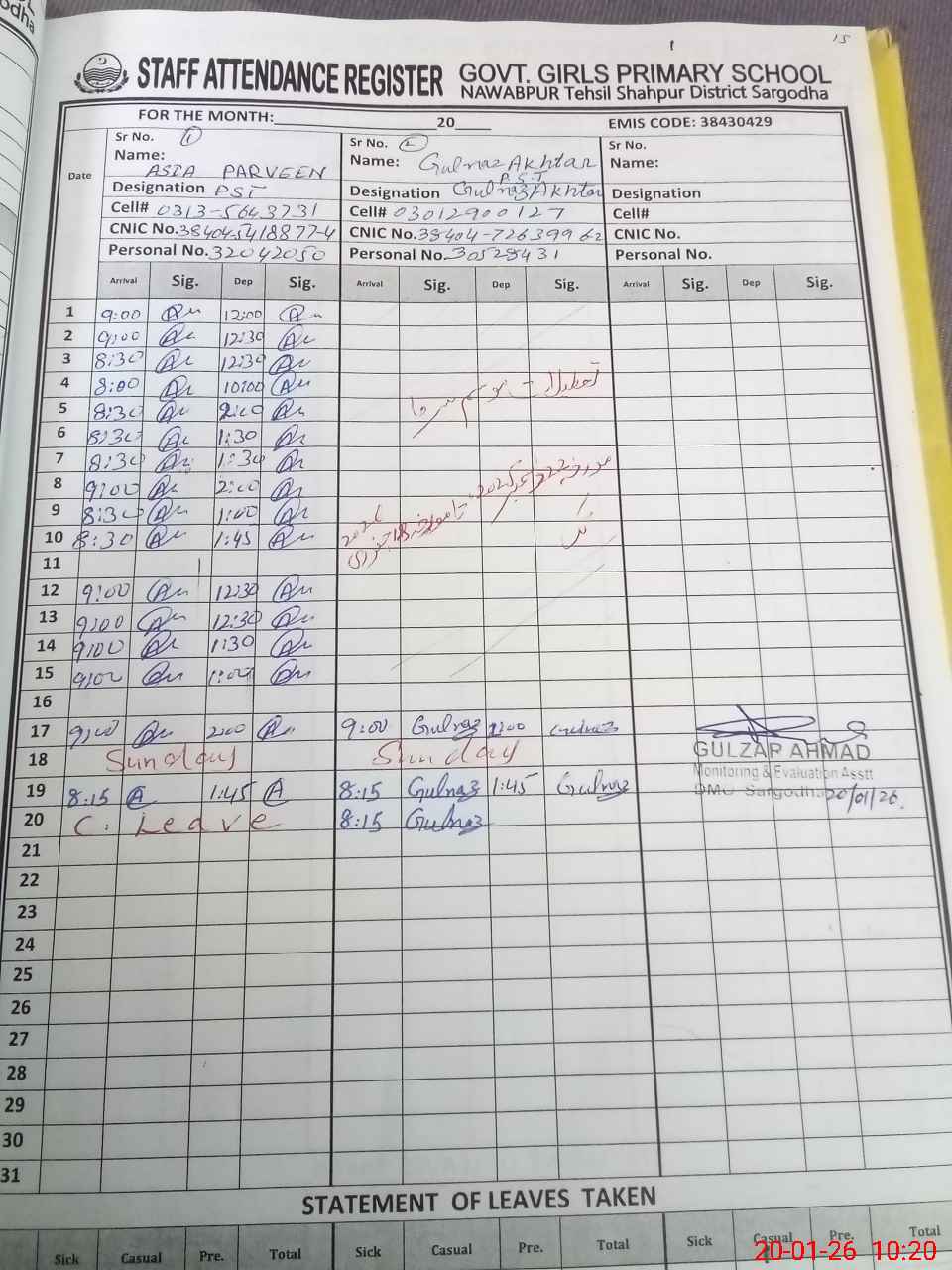 | Name: AS**** PA**** Designation: (School Headmaster's/Headmistress's) PST (Sc-Math) Phone/Cell Number: 03**** |