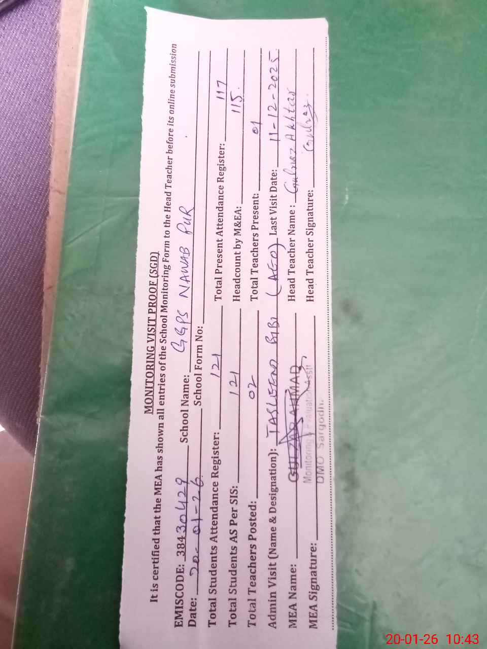 | EMIS Code: 38430429 | Name of School: GGPS NAWAB PUR | |||