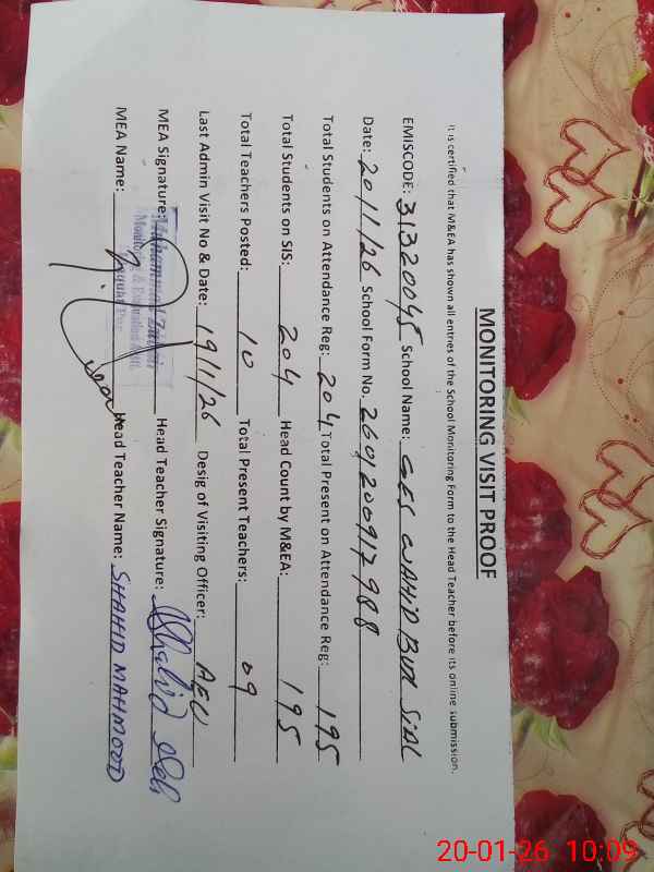 | EMIS Code: 31320045 | Name of School: GES WAHID BAKHSH SIAL | |||