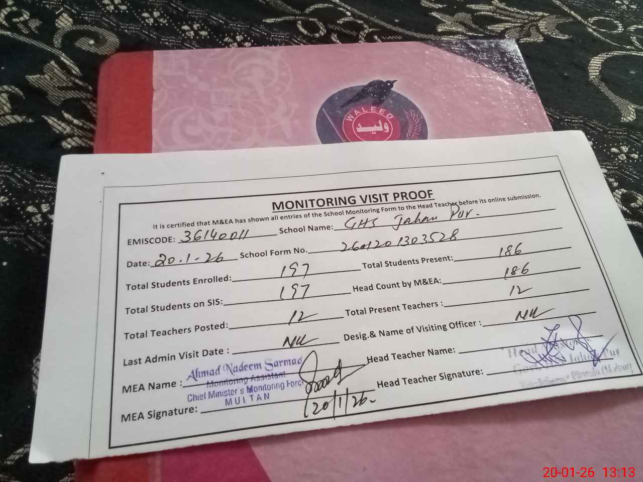 | EMIS Code: 36140011 | Name of School: GHS JAHAN PUR JALALPUR PIRWALA | |||