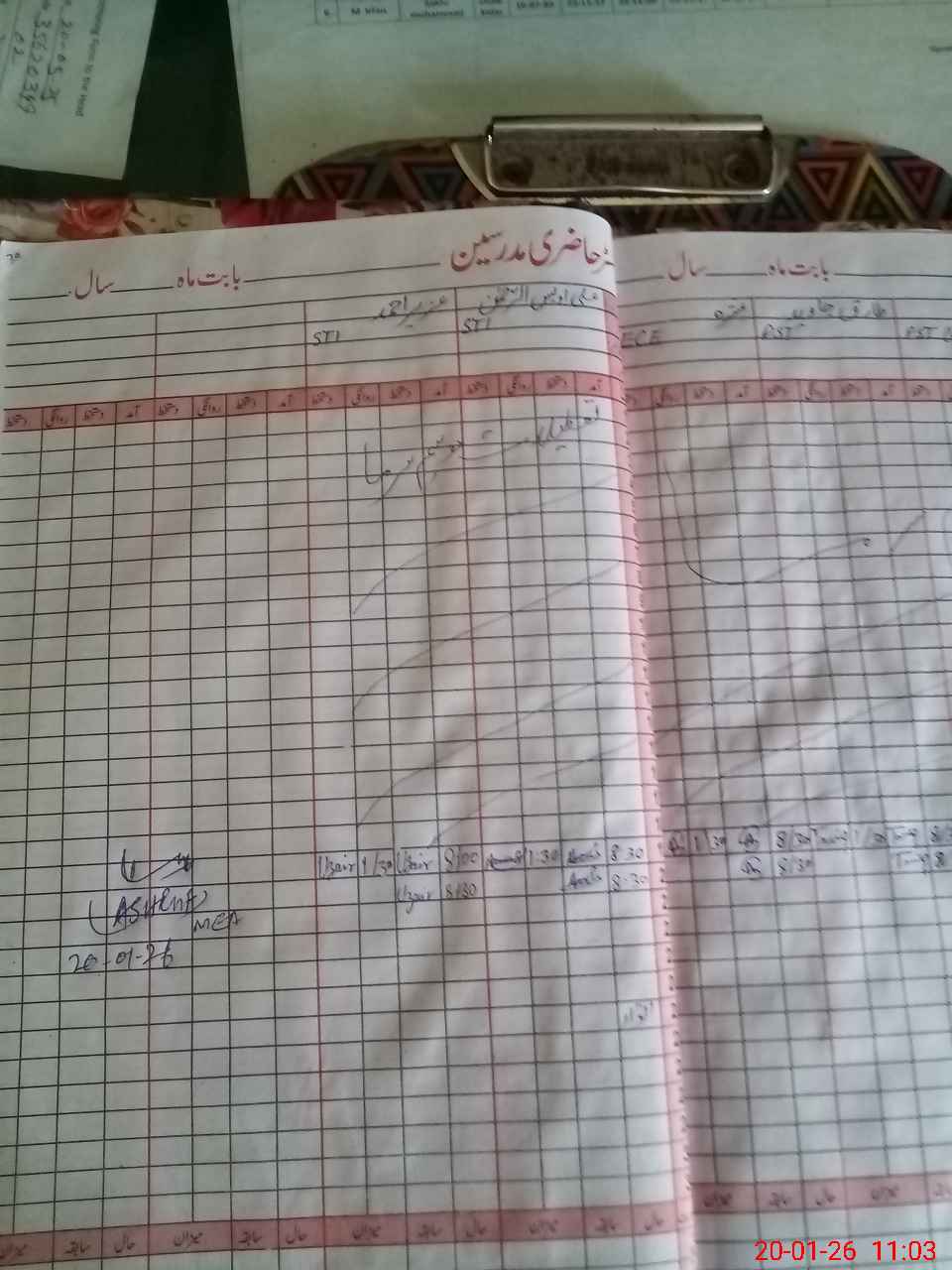 | CNIC | Full Name | Designation | R/C | Absence During Last Calender Month |