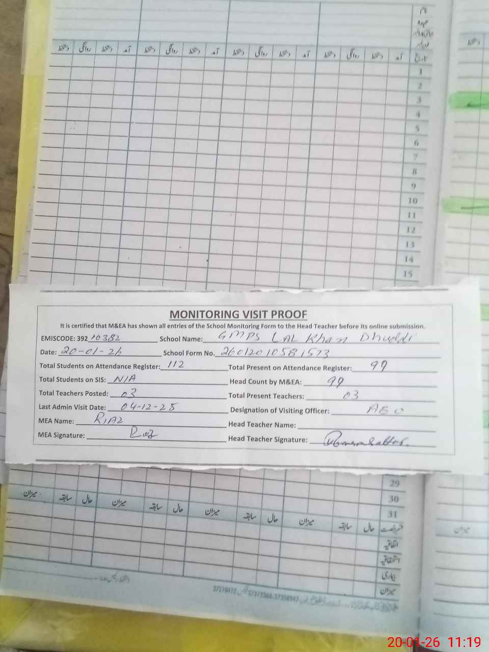 | EMIS Code: 39210382 | Name of School: GMPS LAL KHAN DHUDI | |||