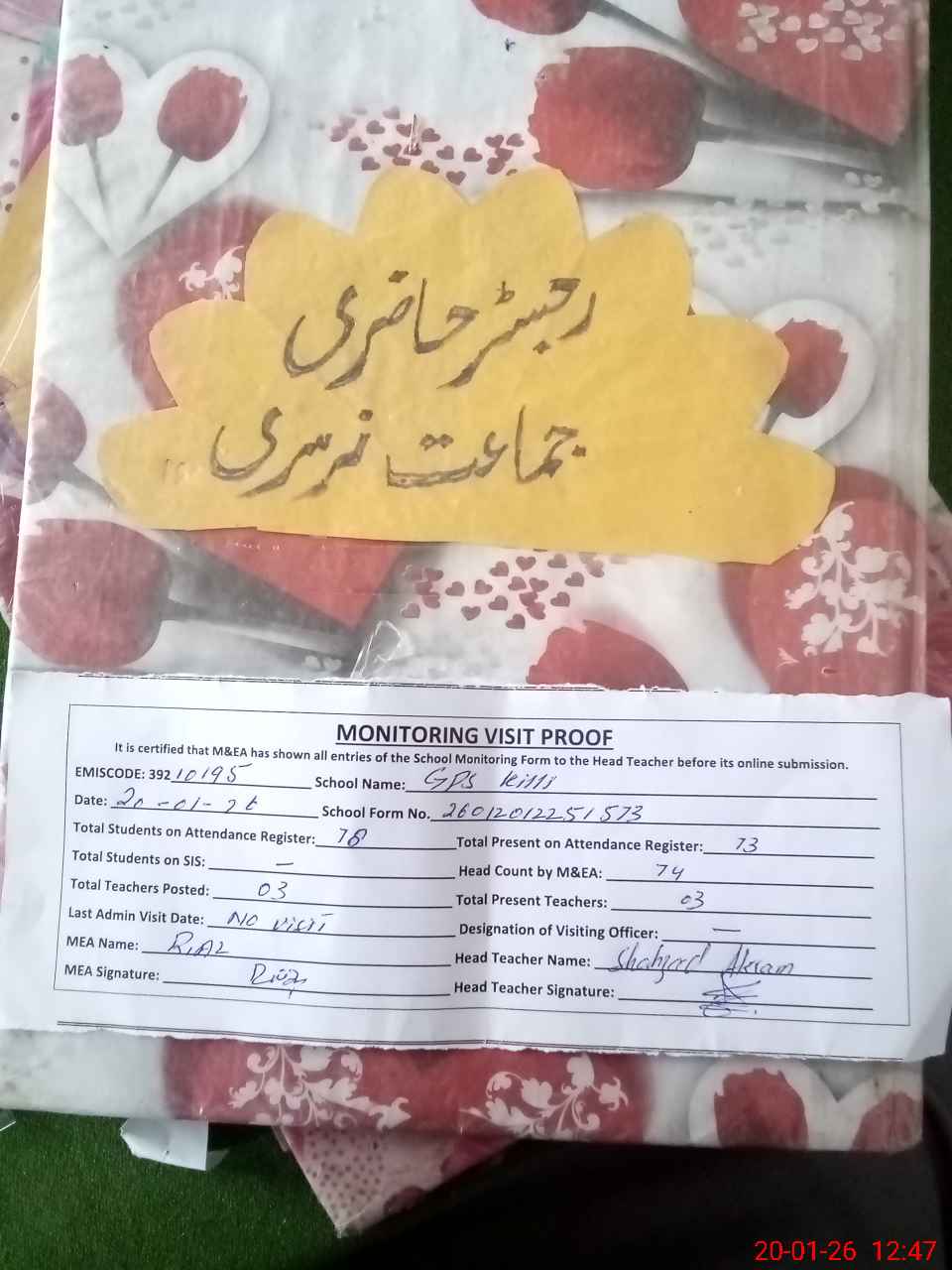 | EMIS Code: 39210195 | Name of School: GPS KILLI PO PAKPATTAN | |||