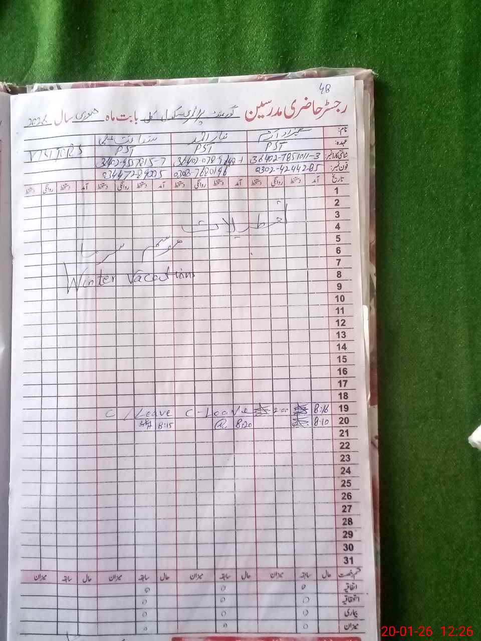| Name: SH**** AK**** Designation: (School Headmaster's/Headmistress's) PST Phone/Cell Number: 03**** |