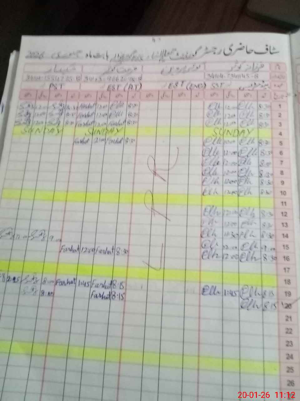 | CNIC | Full Name | Designation | R/C | Absence During Last Calender Month |