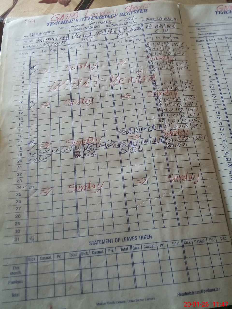 | Name: SA**** RA**** Designation: (School Headmaster's/Headmistress's) PST Phone/Cell Number: 03**** |