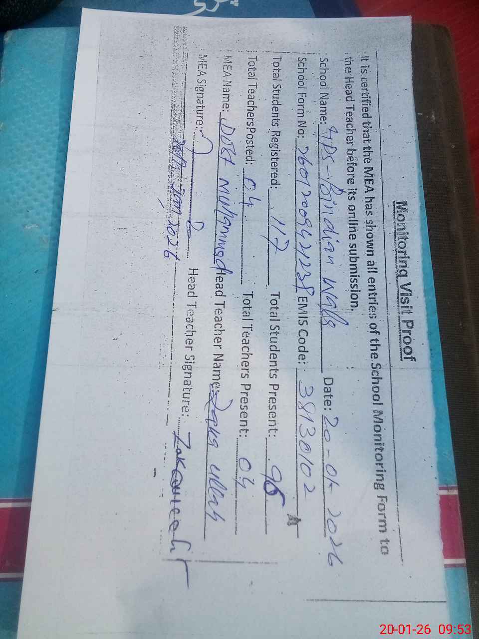 | EMIS Code: 38130102 | Name of School: GPS BINDIAN WALA | |||