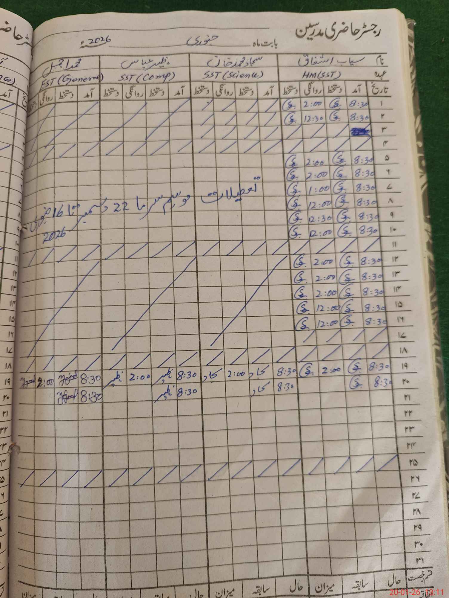 | CNIC | Full Name | Designation | R/C | Absence During Last Calender Month |