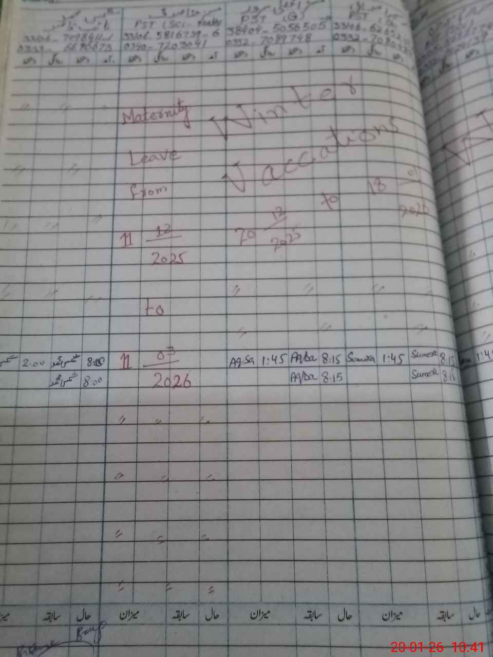 | Leave | Duty | Absent | Maternity | Medical | Ex- Pak |