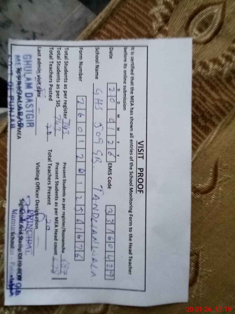 | EMIS Code: 33160429 | Name of School: GHS CHAK 509 GB MAMUNKANJAN FSD | |||