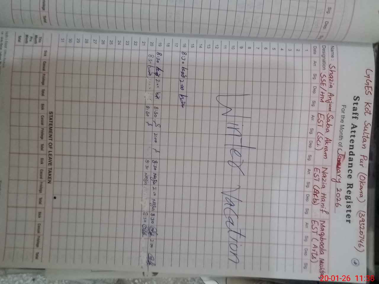 | Name: Sh**** An**** Designation: (School Headmaster's/Headmistress's) SSE(A) Phone/Cell Number: 03**** |