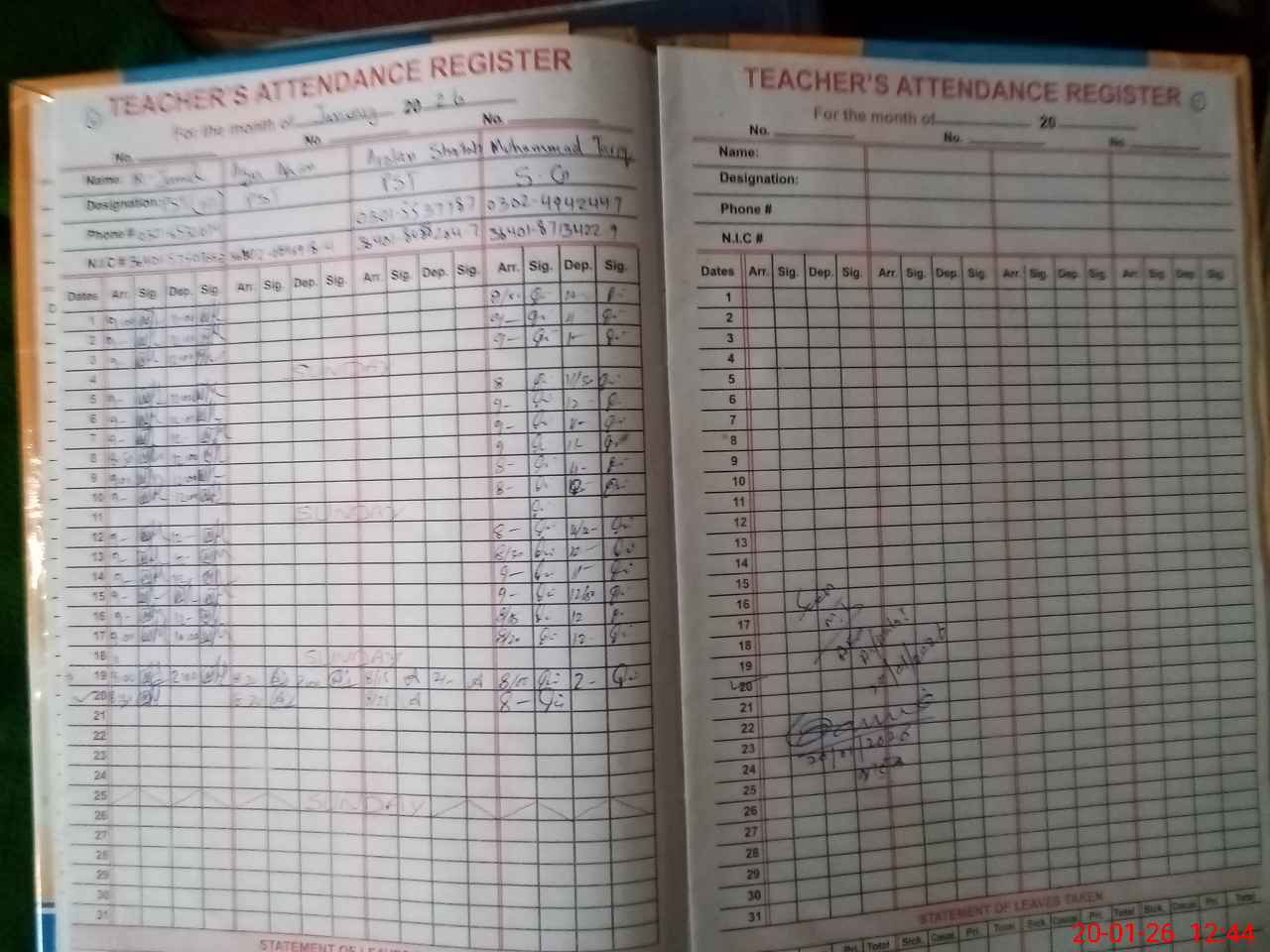 | Name: MU**** JA**** Designation: (School Headmaster's/Headmistress's) PST Phone/Cell Number: 03**** |
