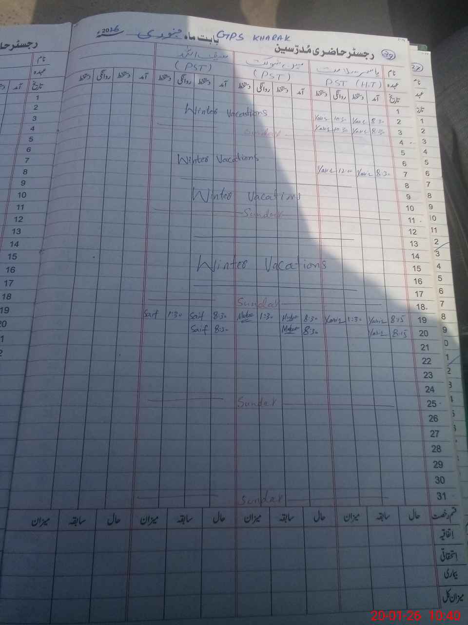 | CNIC | Full Name | Designation | R/C | Absence During Last Calender Month |