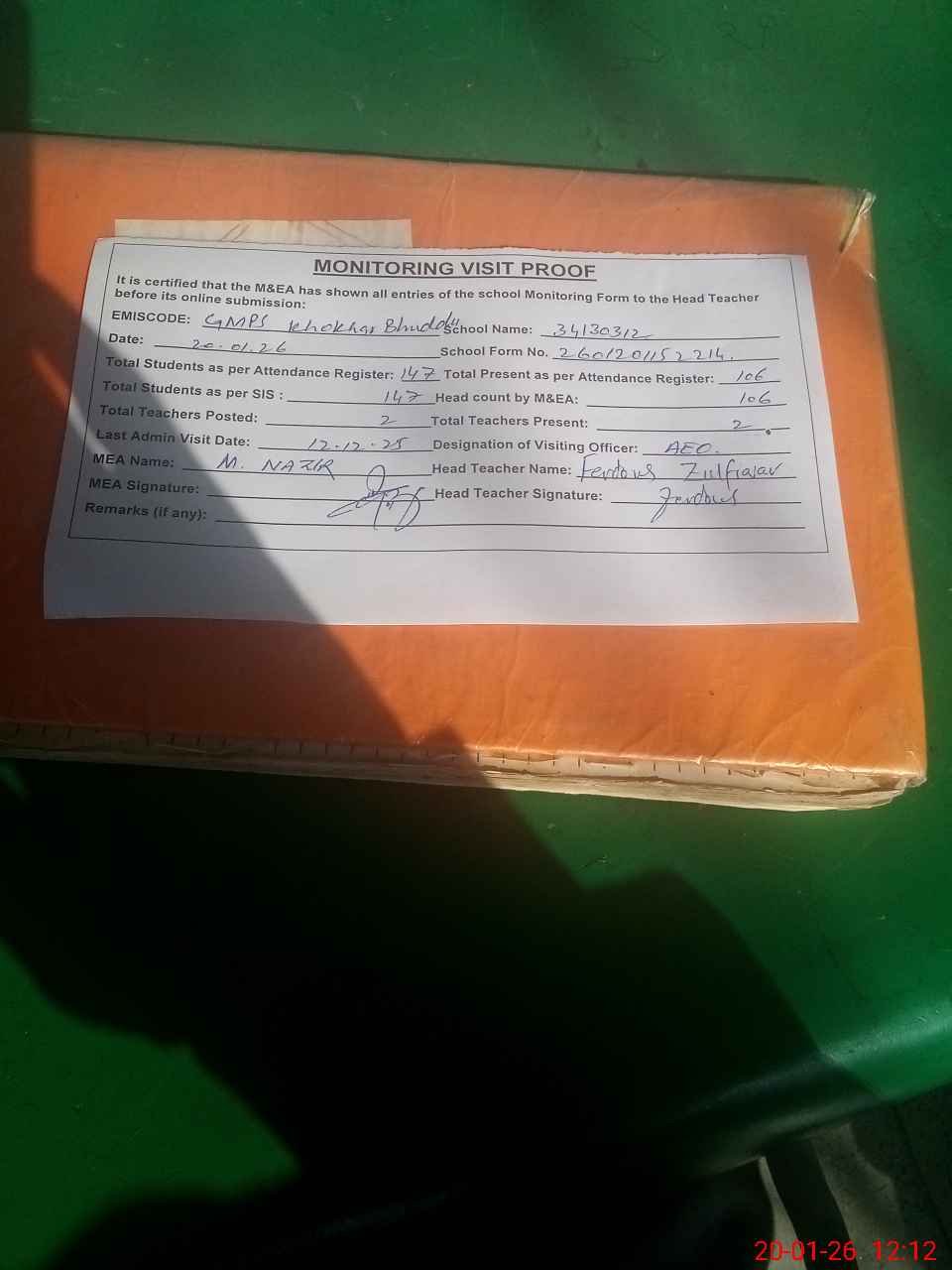 | EMIS Code: 34130312 | Name of School: GMPS KHOKHAR BHUDDO | |||
