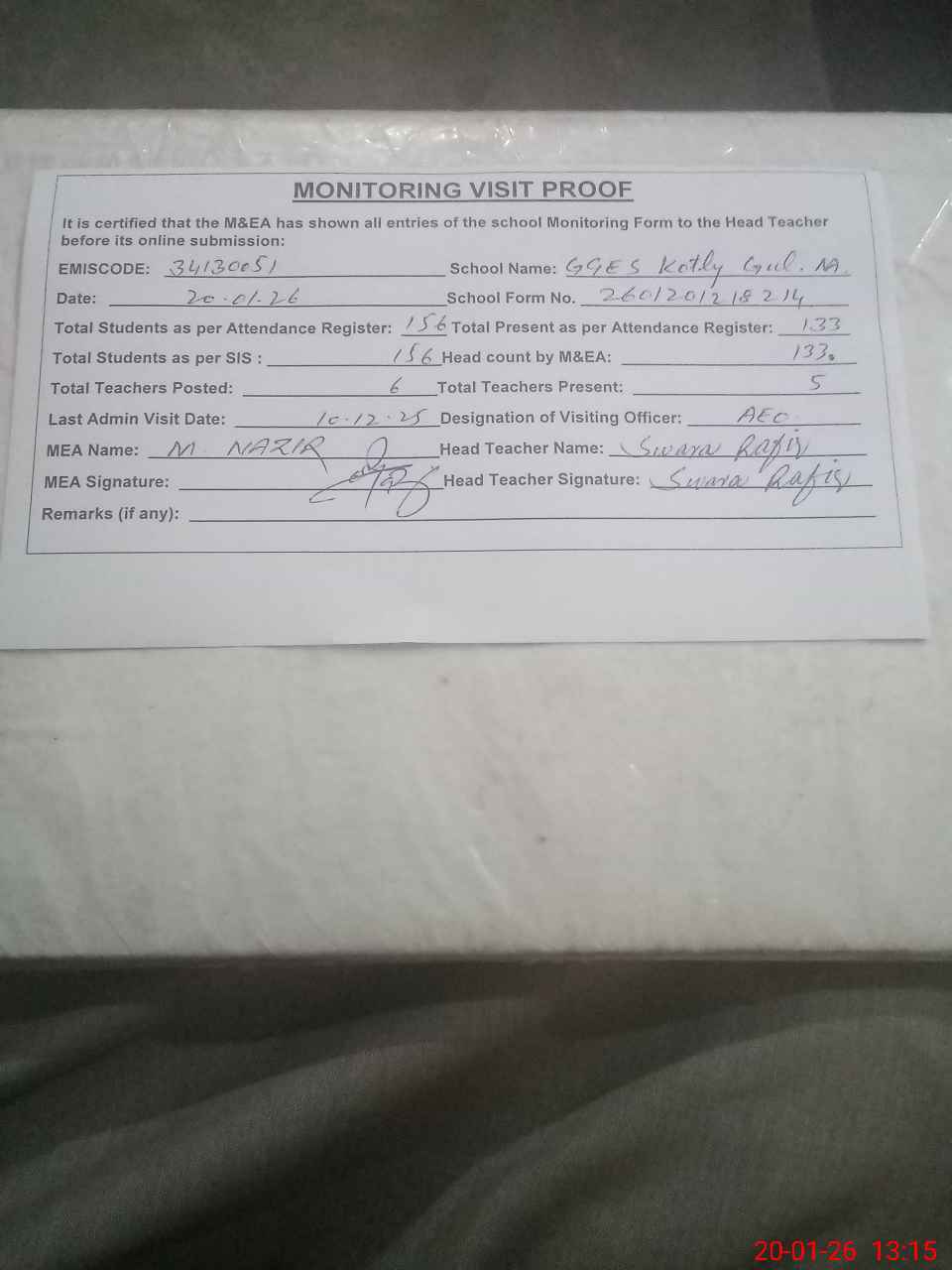 | EMIS Code: 34130051 | Name of School: GGES KOTLI GUL MUHAMMAD | |||
