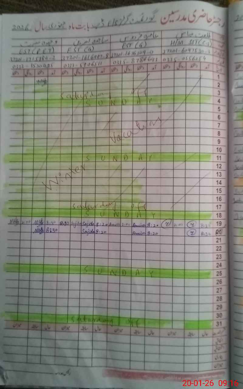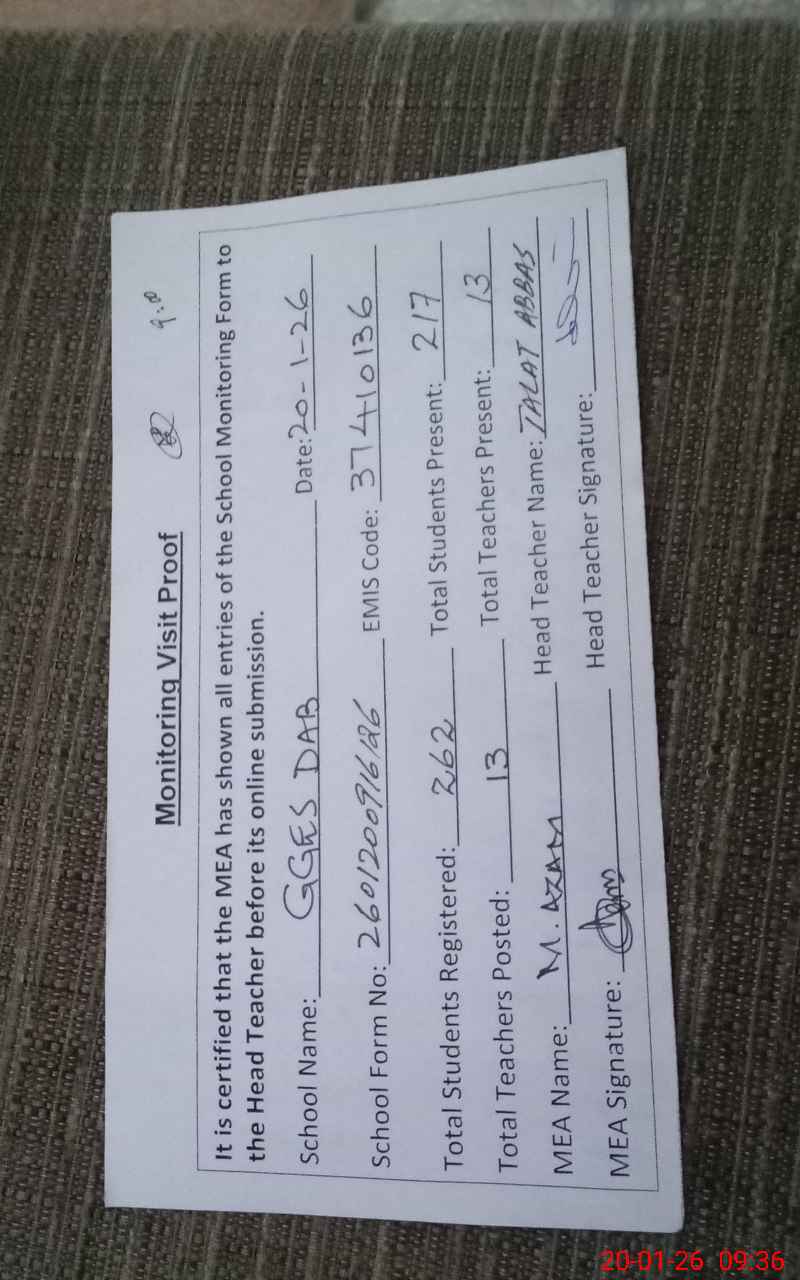 | Attendance Register | Head Teacher | MEA with School | Visit Proof |
