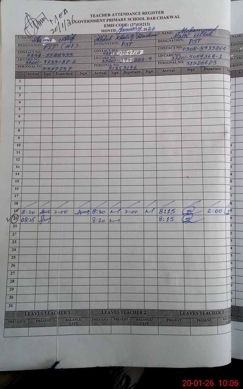 | 38**** | Na**** Ak**** | ESE Science | Contract | 0 | 0 | 31 | 0 | 0 | 0 | 0 | 0 | 0 | Absent (Un-Authorized) |