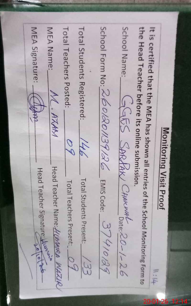 | EMIS Code: 37410129 | Name of School: GGES SARPAK CHAKWAL | |||