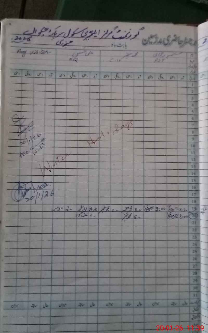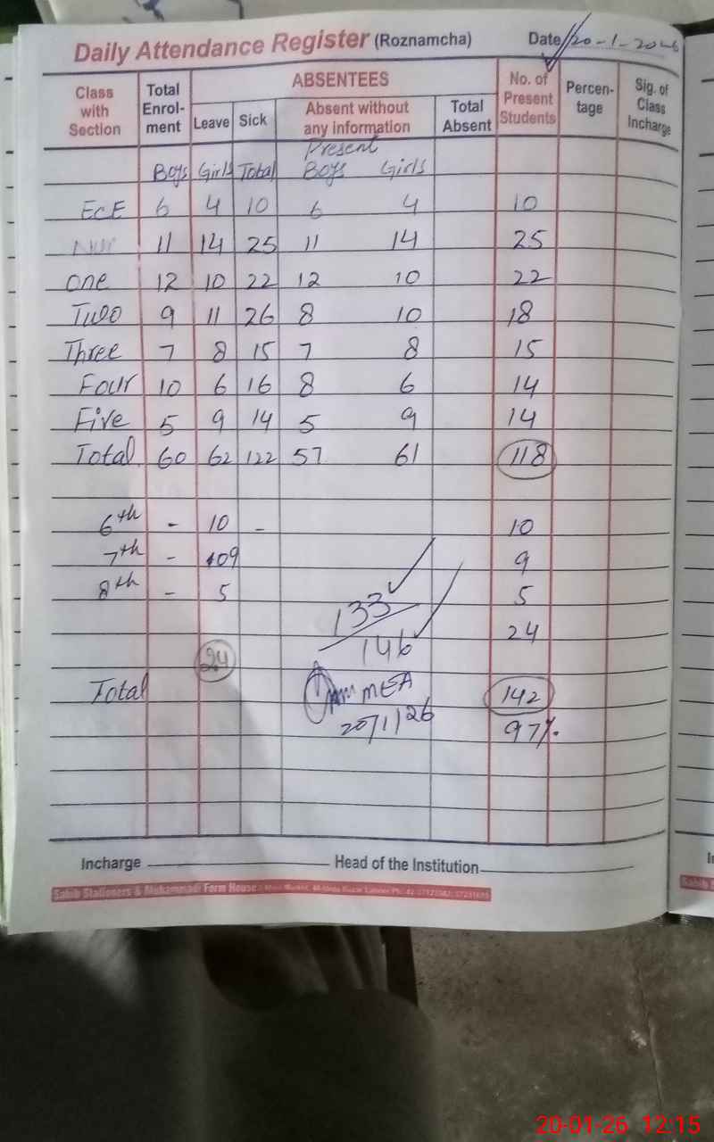 | Attendance Register | Head Teacher | MEA with School | Visit Proof |