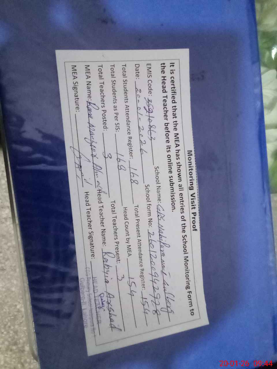 | EMIS Code: 35210863 | Name of School: GPS NABI PURA GULBERG-III (EX-MCL) | |||